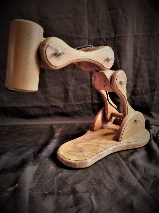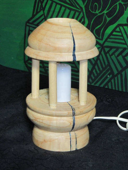 Tour à bois, chantourneuse et sculpture pour réaliser cet lampe atypique.
