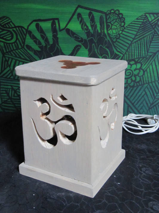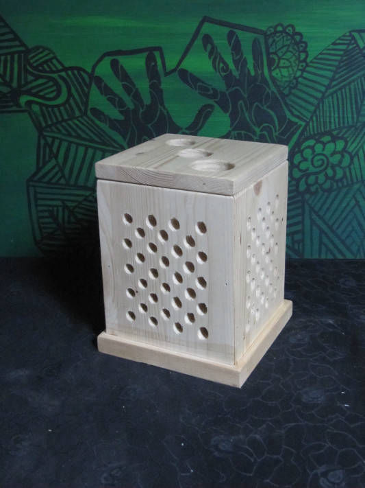 Une touche de géométrie, le bois est percé à intervalle régulier pour offrir un Leger éclairage avec une couleur selon l'humeur.